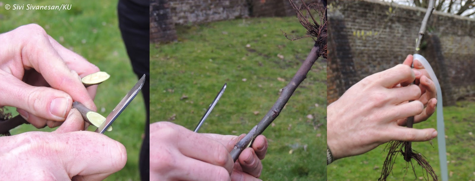 | A quick lesson in grafting ended the day with a new tree sapling which was donated to the Hogsmill Community Garden which is next to the eel trap at Middle Mill |